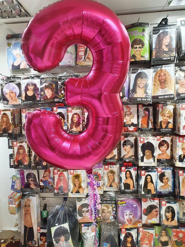 34 Inch Magenta Pink Number 3 Foil Balloon