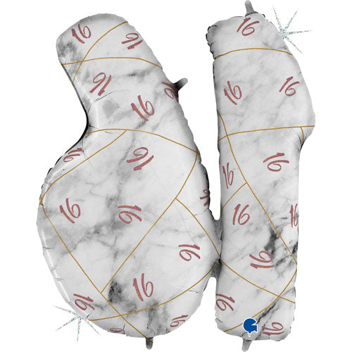 36" supershape Foil Balloon, marble effect with gold & rose '16'!