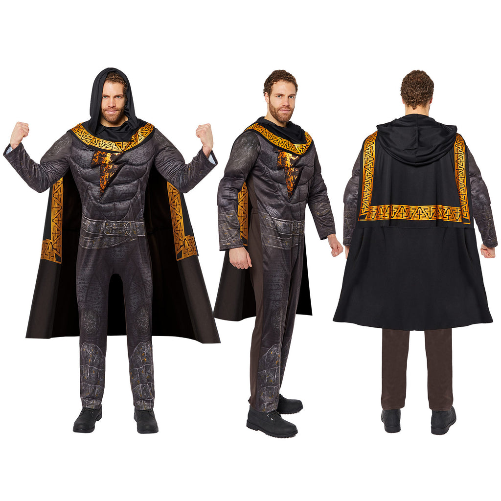 - black Jumpsuit with padded muscle chest, foil printed logo & printed belt.