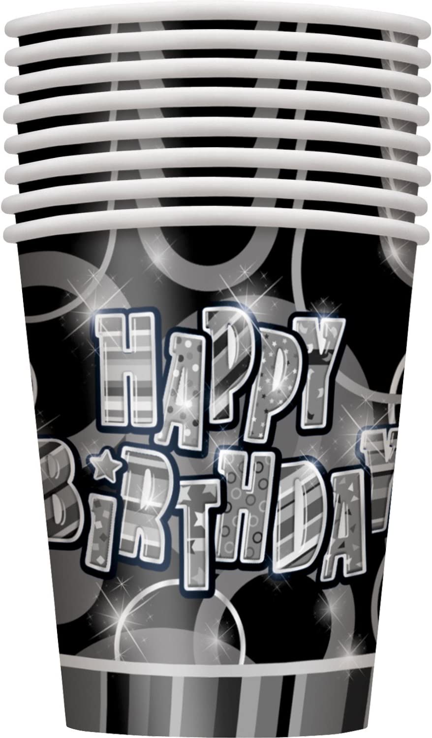 Black Glitz Happy Birthday 9oz Cups (8pk)