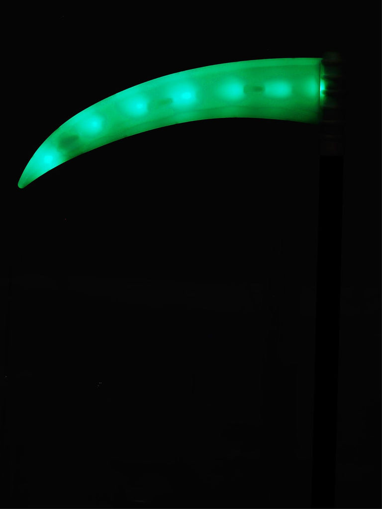 100cm (39") tall plastic Grim Reaper Scythe with green LED lights. In 5 pieces for easy transportation and storage.