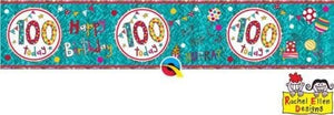 Includes turquoise holographic foil banner with '100 today Happy birthday' message.